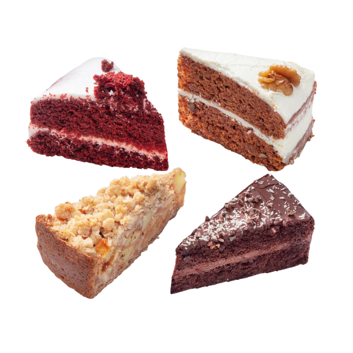 Onze gebakcollectie zit bomvol lekkers: van kleurrijke cupcakes tot klassieke puntjes taart. Maak je keuze op smaak, vorm of aantal personen. Voor ieder wat wils!