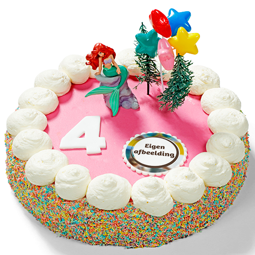 Deze kidstaart met de kleine zeemeermin is een echt feestnummer en zorgt ervoor dat de jarige gaat stralen. Als basis luchtige cake gevult met slagroom en een laagje jam. Onze bakkers hebben de zijkant aangezet met chocolade hagel en voorzien van een marsepeinbovenkant wat het extra kleurrijk maakt.