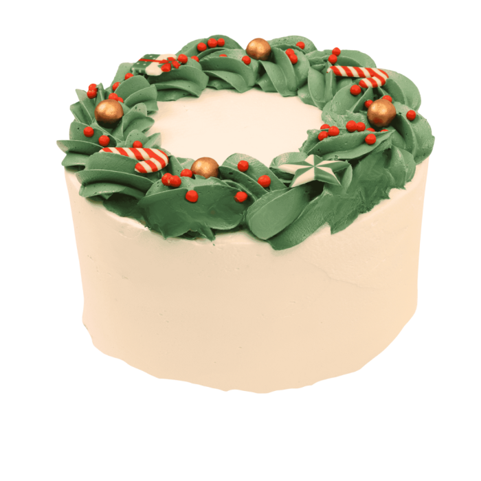 Feestelijke Layer cake Kerst Krans met groene crème en logo of afbeelding, perfect voor de feestdagen.