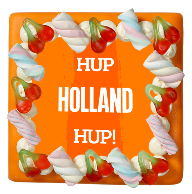 De Oranjezomer vier je natuurlijk met een marsepeintaart! Deze ambachtelijke marsepeintaart met logo is gevuld met echte slagroom en een luchtige cake. De taart is volledig omhuld met een zoete laag amandelmarsepein, decoreerd met spekjes en snoepkersen en voorzien van een leuke print om onze oranje teams aan te moedigen. Met deze marsepeintaart wordt de Oranjezomer zeker een succes!