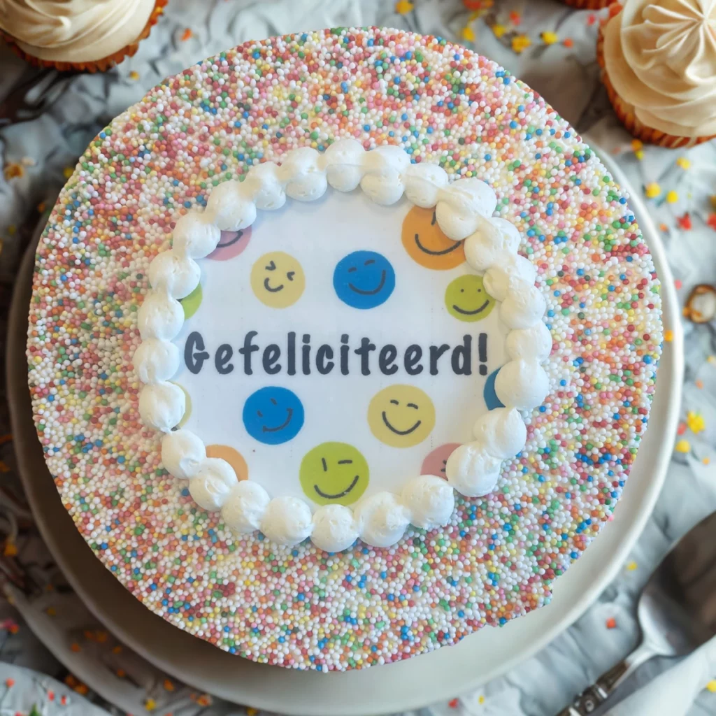 Elke taart kan worden geleverd met een feestelijk kaartje voorzien van jouw eigen boodschap.