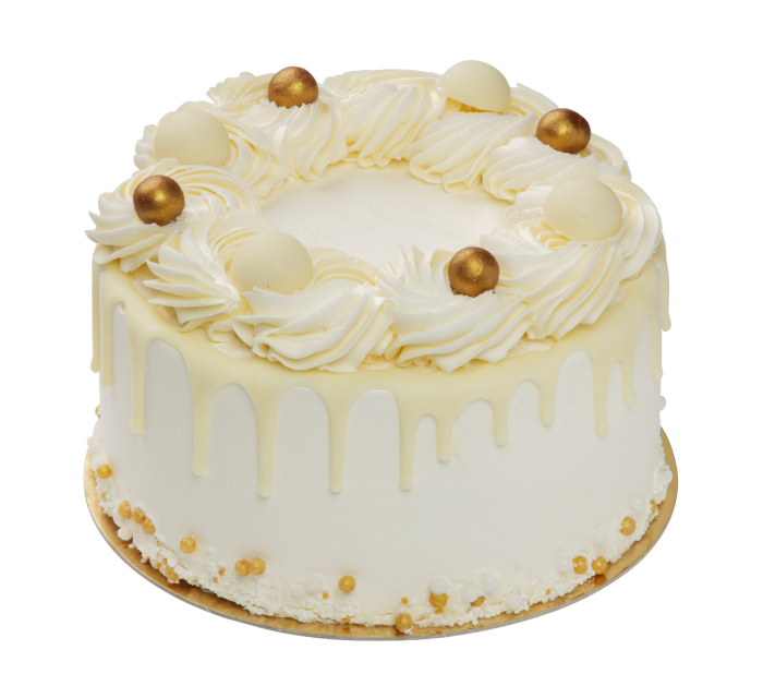 Laat je feestje schitteren met de White Gold Layer Cake: een heerlijke laagjestaart met romige vulling en een stijlvolle gouden uitstraling!